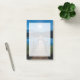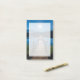 Sticky notes with a beautiful photograph of a wooden pier stretching out over a calm lake.