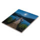 Ceramic tile with a beautiful photograph of a wooden pier stretching out over a calm lake.