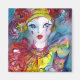 Colourful,vibrant and whimsical watercolor painting in bright red,yellow,blue,white,purple colours inspired from Carnival of Venice and Commedia dell'Arte.