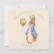 Pierre le lapin sur fond beige avec le texte "Merci d'être venu à ma fête"