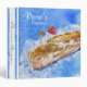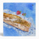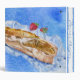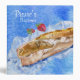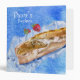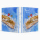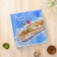 This blue watercolor binder is of a crusty french baguette and two strawberries against a textured background of blues. Text in white reads "Pierre's Recipes" in two fonts, and on the spine. Also on the spine are two watercolor strips of blue with a deckle torn edge for accent. Change ANY OF the text or font to create your personalized binder. If you need help customizing, contact lilly@lillyarts.com