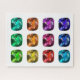 Pierres à coussin dans toutes les couleurs Puzzle gemologique - bleu, bleu ciel, violet, orange, rouge, jaune vert