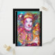 Colourful,vibrant and whimsical watercolor painting by Bulgan Lumini (c) in bright red,yellow,blue,white,purple colours inspired from Carnival of Venice and Commedia dell'Arte.