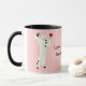 White and black 11 oz. combo mug with a vintage image, on both sides, of the sad clown Pierrot offering up his deep red heart to love. Optional text. See matching shot glass and coasters. See the entire Tubular 80s Mug collection in the FOOD/BEV | Dishes section.