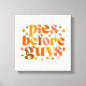 This fun and cheeky fall-themed design features the playful phrase "Pies Before Guys" in a bold, retro-inspired font. The text is arranged in a compact, stacked layout with each word in a different font style, creating a dynamic and eye-catching composition. The colour palette includes warm autumnal hues like deep oranges, rich browns, and golden yellows, perfectly capturing the cozy vibes of the season.