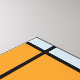 This oil on canvas from 1920 shows a composition with black, red, grey, yellow (orange), and blue blocks in a style that came to be known as De Stijl or Neo-Plasticism.