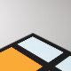 This oil on canvas from 1920 shows a composition with black, red, grey, yellow (orange), and blue blocks in a style that came to be known as De Stijl or Neo-Plasticism.