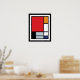 This oil on canvas from 1920 shows a composition with black, red, grey, yellow (orange), and blue blocks in a style that came to be known as De Stijl or Neo-Plasticism.