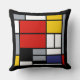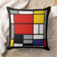 Pillow inspired by Piet Mondrian's Composition with Large Red Plane, Yellow, Black, Grey, and Blue De Stijl modern art painting.