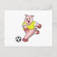 Pig as Soccer player with Soccer Postcard