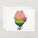Pig at Inline skating with Roller skates Postcard