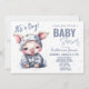 Pig Baby Shower Dusty Blue Boy Farm Invitation