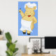 This original illustration of a happy pig wearing a chef's hat and apron is on this fun pig poster for chefs, cooks, and people who love cooking and eating good food.