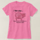 Fun illustration of a pink pig with a humourous message. Text says ... I like Pigs, Dogs look up to us. Cats look down on us. Pigs treat us as equals.