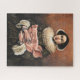 Puzzle feating a portrait of a quasi-elizabethan lady holding a pig's head