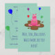 Get the party started with this fun and playful barnyard-inspired invitation featuring a relaxed pig in a mud puddle surrounded by festive balloons and the cheeky phrase: “Mud, Fun & Balloons—What More Do You Need?”