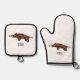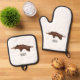 Pig roast / hog roast cartoon illustration oven mitt & pot holder set