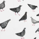 Pigeons marching about on a white background. Original art by Nic Squirrell.