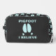 Maybe it is just a typo, or a mutant Sasquatch; or maybe some parts of the world are inhabited by another class of cryptid animals. A simple, blue representation of a feral hog's footprint along with text reading, "PIGFOOT." Customizable text reading, "The Quest To Bring Home The Bacon" also appears. Who knows what is out there running around in the woods? Become a Pigfoot researcher and bring home the bacon.