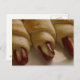 LOL just for fun. Pigs in a blanket, those naughty diet busters of hot dogs with cheese that are rolled into triangle style rolls and baked. This design is printed on a post card.