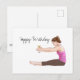 Pilates Spine Stretch exercise with cocktail Happy Birthday card.