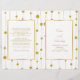 Perles de feuille d'or mariage moderne plié cérémonie et programme de fête avec un motif de corde avec boules de feuille d'or avec brillance métallique qui ressemble à des perles sur la corde sur arrière - plan blanc. Votre texte est dans un cadre doré. Cette élégante et élégante modèle mariage est entièrement personnalisable et conviendra parfaitement à une mariage contemporaine. Il faut le plier au centre. Choisissez seulement ce type de papier-valeur comme il se plie bien. Notez qu'IL N'EXISTE PAS VRAIMENT D'OR FOIL SIMPLEMENT DES IMAGES IMPRIMÉES.