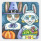PILGRIM RABBITS, THANKSGIVING HARE'S HARVEST, CUTE SQUARE STICKER