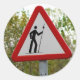 A "Caution, pilgrims walking" sign along the Camino de Santiago.