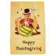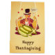 A confused cartoon turkey wearing pilgrim clothes Text: Gobble?, Gobble? and Happy Thanksgiving!