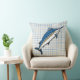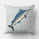 Not many fish are more incredibly beautiful than the blue marlin -- and not many fish are larger. The blue marlin is the largest of the Atlantic marlins and, seriously, one of the biggest fish in the world. As with some species, the female is often quite a bit larger than the male. Females can grow up to 14 feet long and can weigh more than 1,900 pounds, though the average runs more around 11 feet long and 300-ish pounds. A deep blue on top and silvery-white beneath, with a pronounced dorsal fin and a long, lethal, spear-shaped upper jaw (that some refer to as a bill), blue marlins are one of the most easily identifiable and recognizable fish in the world. Marlins are renown for their incredible stamina in a fight when they are hooked, which makes them a trophied favourite of big game fishermen. Though it can also be said of virtually any super big fish, I can't imagine there's much more thrilling to the avid angler than hooking one of these giants and seeing it break water in the fight. This design pays homage more to this majestic fish than the anglers that seek it. For this wonderful pillow, a single, blue marlin leaps from a sea of colour-coordinated plaid on either side, making it the perfect choice for your fishing lodge, beach house or "man cave".