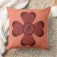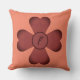 Clover shape with Monogram in central circle. Leaves are darker at the outer edges. Reddish purple design on a salmon coloured background. Initial in centre circle is dark colour of the shadowed edges.