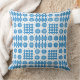 An attractive Throw Pillow or Cushion with a pattern of traditional Welsh Tapestry motifs in Bright Blue on a White background.This pattern will fit all sizes and shapes of pillows.