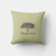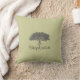 Graphic of an oak tree sits in centre of both sides of pillow. Personalize with one surname on front and second surname on reverse side. Customize background colours to match, or, as in sample, to complement each other and your home's decor.
