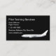 Pilot flight training school and classes in a simple design with classic business card layout and image of a passenger plane in the background. Designed for themes related to airline services, plane maintenance.
