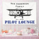 Family's Name, Airplane with Est. date and Text 'PILOT LOUNGE', Personalized Banner sign.