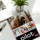 Design features 4 photos in the front and 1 in the back. The front cover also includes 'Pilot' Typography in a minimalist design, a name and the year. Customize it with your favourite photo memories, your name and year.