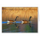 Une paire d'oies canadiennes est en mouvement. L'oie qui suit le leader semble avoir quelque chose à dire.