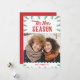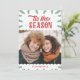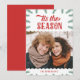 Célébrez la saison des fêtes avec un carte photo de vacances en pin d'hiver. La carte photo moderne de Noël comporte une bordure en pin vert, les mots "c'est la saison" en typographie rouge stylisée, cadre photo à échelles, et des espaces réservés pour le texte personnalisé et une photo.
