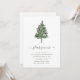 Ce faire-part de mariage de vacances simple et élégant est orné d'un pin rustique illustré d'aquarelle verte, avec un script manuscrit branché sur un arrière - plan blanc propre. Un look minimaliste pour votre mariage de Noël ou d'hiver.