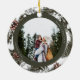 This beautiful holiday ornament features a centre circular framed photo, your customized name and Merry Christmas in simple typography. This rustic ornament features a painted pine and elegant baubles pattern. Shop this store for additional ornaments and classic Christmas cards!