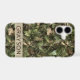 Customize this pine and leaves camouflage iPhone 17 case with your name in a trendy modern CAP font in brown on opaque cream. It's masculine and perfect for your favorite military, hunting, country or outdoorsman!