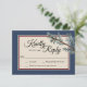 This Pine Blue Winter wedding response card combines a classy, formal dusty blue framed border with elegant, evergreen pine tree boughs for a classic, yet rustic look. The botanical greenery foliage with calligraphy type over a beige background creates a nature focused vibe for a Christmas or forest destination marriage celebration.