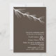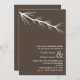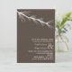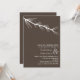 A simple wedding rehearsal dinner invitation featuring an illustration of a pine bough at top. Personalize the text at bottom right. Brown background.