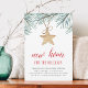 Des amis Invitations à une fête de la maison de Noël avec nos invitations modernes et charmantes à la fête de Noël. Le design présente des boucles de pin aquarelle avec un ornement étoilé en bois, et "nouvelle maison pour les vacances" en lettres rouges festives. Customisez avec les détails de votre fête de réchauffe au-dessous.