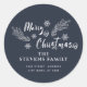 Pine branch snowflake script Merry Christmas Classic Round Sticker