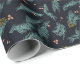 This holiday wrapping paper design features hand drawn pine branches, pine cones, and holly berries in a whimsical style. Created in bright colours and sprinkled on a dark background this playful pattern is fun yet elegant.