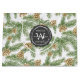 Beautiful watercolor pine branches and pine cones snowing pattern with a round watercolor badge and a monogram.