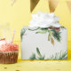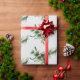 Festive and wintery wrapping paper for the Holidays features a watercolor pattern of evergreen branches with pinecones on light grey background.