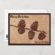 A rustic, monotone brown image of pine cones on a branch, superimposed on an old paper background image. Customizable text reading, "Merry Christmas" also appears. There is also a place for you to add your own additional text.