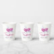 Personalize these wedding party paper cups with your own couple's full names. Dark navy blue, purple plum colour, on white cups are ideal for winter wedding events. Other matching items and colours are available. © Original pine cone art hand drawing and design by Sarah Trett for www.mylittleedenweddings.com and www.mylittleeden.com